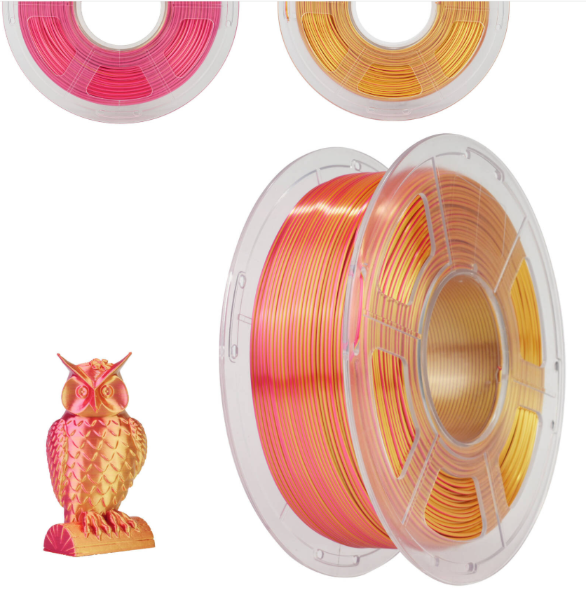 Silk PLA 3d filament 1.1kg, dubbele kleur rood -goud 1,75mm Jayo Red Gold